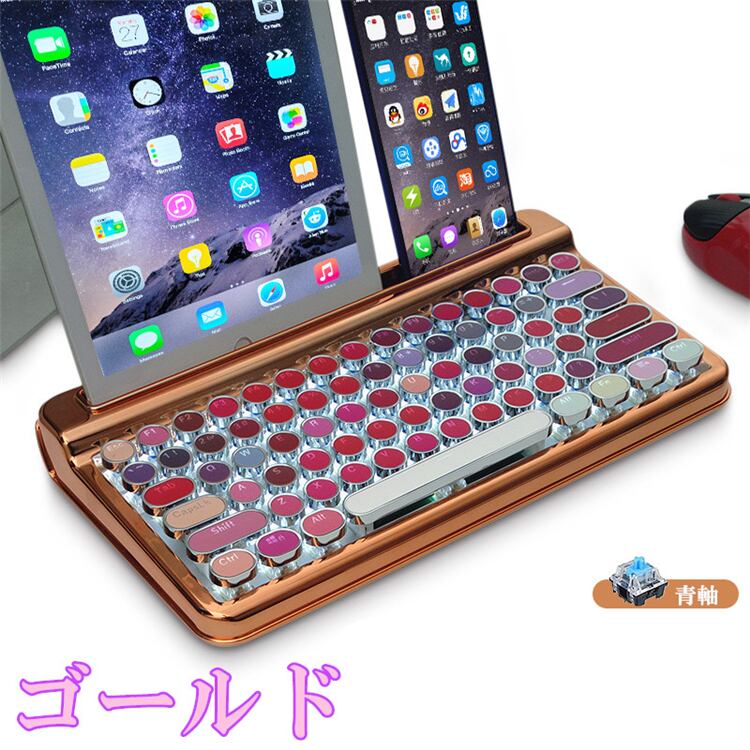 ブルートゥース ワイヤレス メカニカルキーボード iPadタブレット 携帯電話 マカロン 口紅 タイプライター 76鍵キーボード